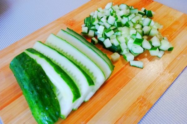 Я делаю так. Не знаю, нужно это или нет. На мой взгляд это делает окрошку вкуснее. Плюс, добавляет густоты. В общем, отложенные ранее огурец и редис тру на средней терке и добавляю к остальным продуктам.