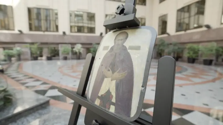 В атриуме корпуса № 1 Министерства иностранных дел России открылась выставка, не имеющая аналогов в мире. Экспозиция объединила иконы, написанные студентами Института имени В. И. Сурикова и Художественной академии С. Н. Андрияки, но не на холсте, а на бронелистах, которые в зоне специальной военной операции спасли жизнь русским военнослужащим.