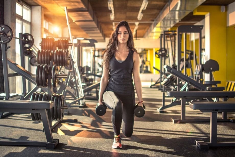 Выпады с гантелями