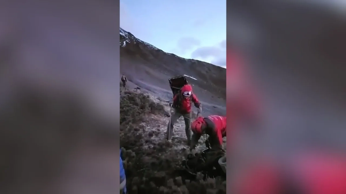 После неудачной попытки подъёма один из туристов смог вызвать спасателей. На место происшествия вылетел вертолёт, который доставил спасательную команду на высоту около 1500 метров. В операции участвуют более 30 человек. МЧС уточняет, что сильные порывы ветра значительно осложняют работу спасателей.
