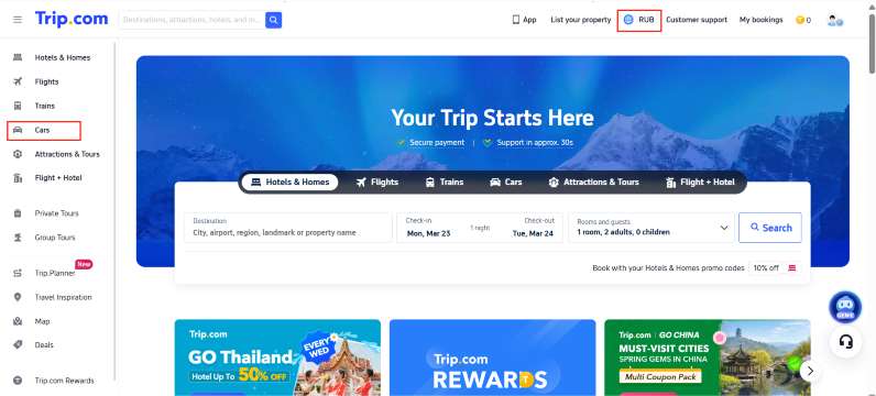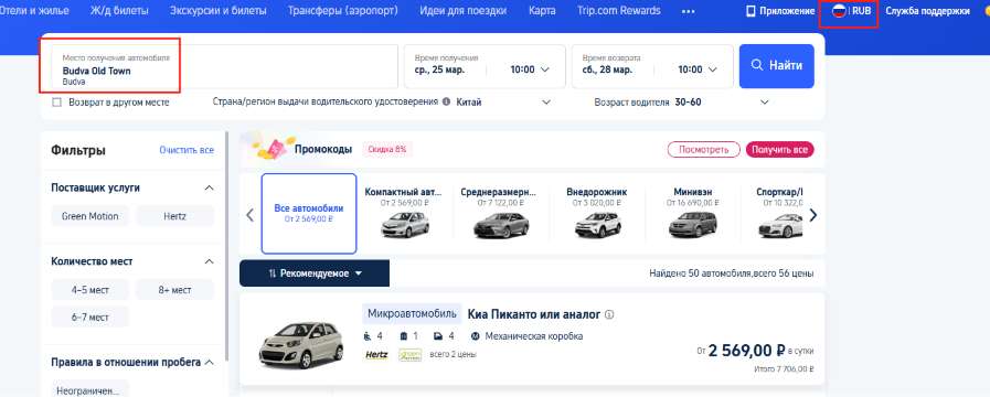6. Trip com промокод на аренду авто